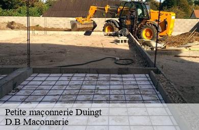 Des travaux de petites maçonneries sont à réaliser pour les terrains. En effet, il est possible de mettre en place des pavés. Ensuite, des opérations de création de murs de clôture sont aussi à effectuer. Les propriétaires peuvent également décider de procéder à la réparation des fissures et des marches qui sont en mauvais état. D.B Maconnerie utilise des équipements appropriés pour effectuer les travaux. Il dresse un devis qui est totalement gratuit et sans engagement.