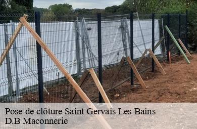 Pour une pose de clôture à Saint Gervais Les Bains, l’entreprise D.B Maconnerie est un professionnel de référence. Spécialiste en aménagement paysager, il vous assure une prestation conforme aux règles respectant le plan d’urbanisme. Vous pouvez lui confier un tel projet. Une pose de clôture permettra de valoriser votre terrain. Pour de plus de détails sur ses offres, il est recommandé de le contacter. Faites-lui part de votre projet et demandez-lui un devis pour découvrir ses tarifs si vous résidez à Saint Gervais Les Bains.